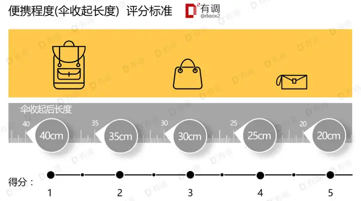 通过向180名用户实际调研,我们将遮阳伞的评分标准划分为: