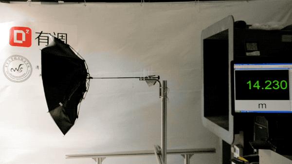 将伞迎向固定在出风口,逐渐增加风速至8级,记录最终伞的毁损状态。
